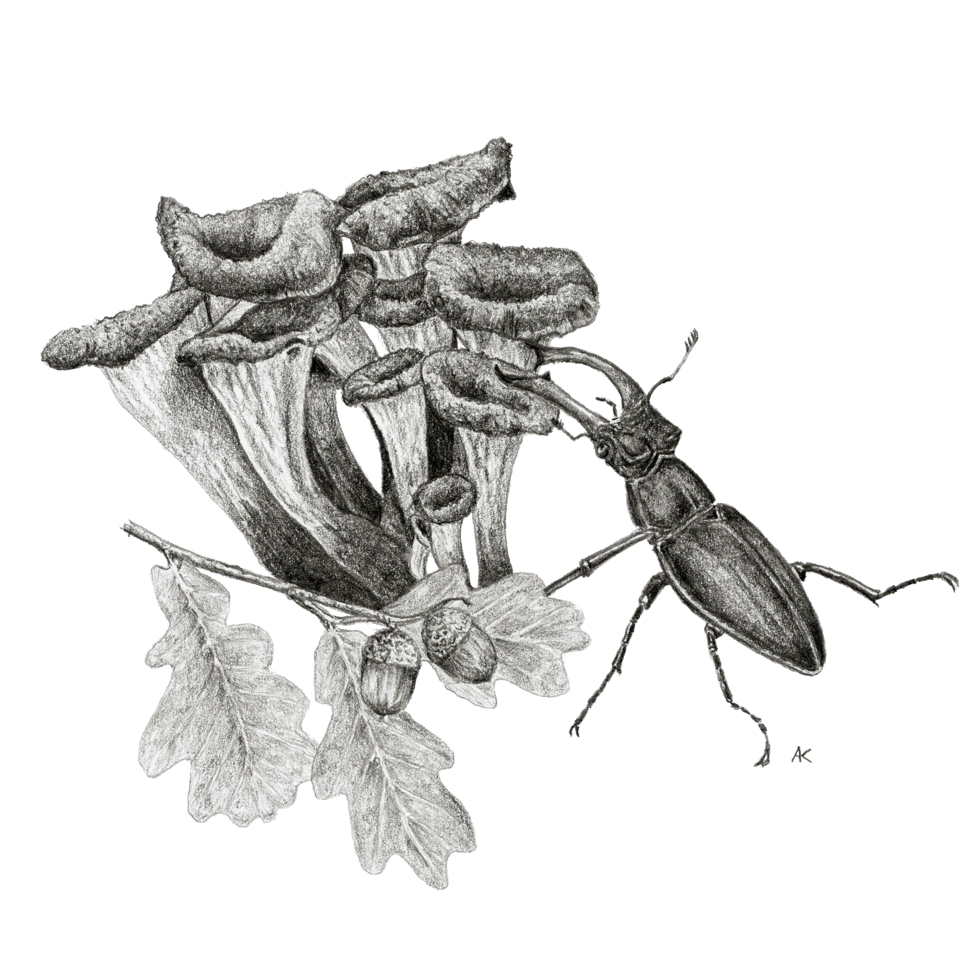 Chêne pédonculé – Trompettes de la mort – Lucane cerf-volant