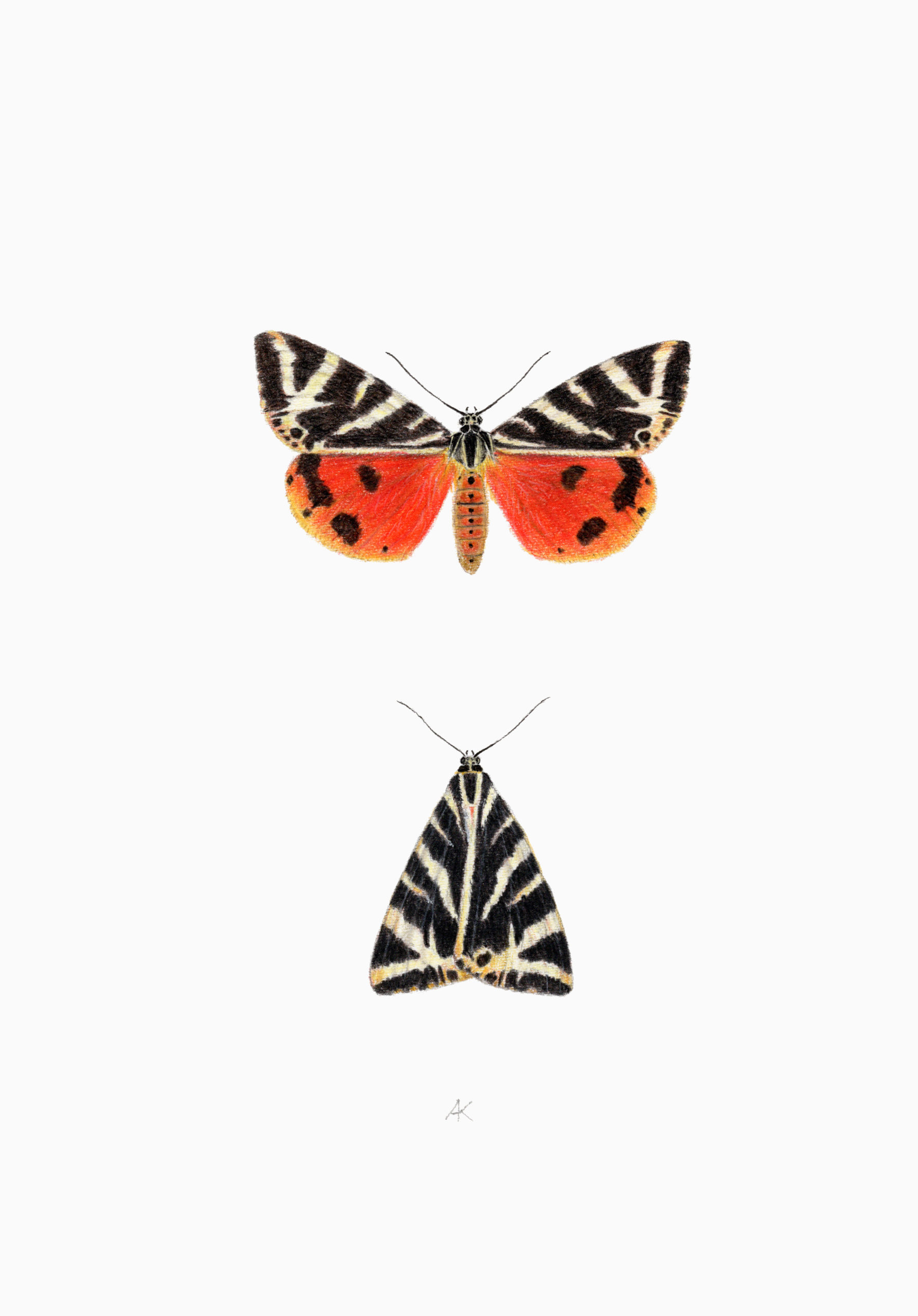 This fine art print depicts the Jersey moth with open and closed wings.