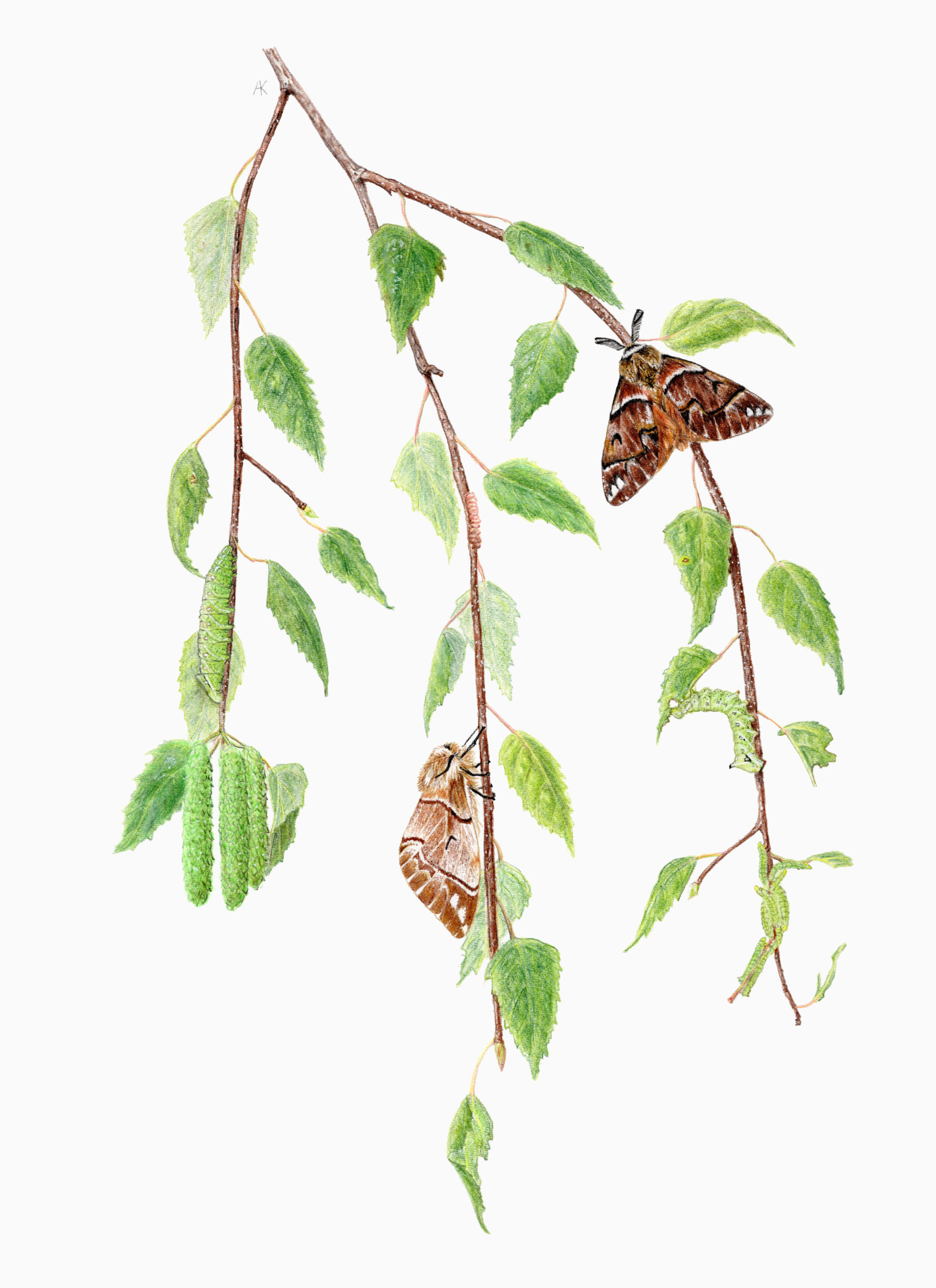 Fine art print – Kentish glory lifecycle on silver beech (A4)